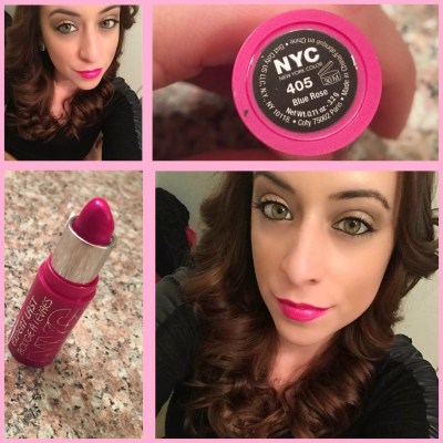 | NYC Lipstick 405 Blue Rose and myself wearing the lipstick. |