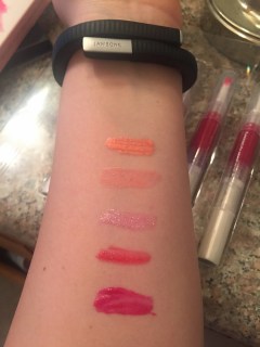 This Hypershine set is a set of 5 different lip glosses, ranging from a peachy color to a dark pinker color. Is pinker a word? I think I meant more pink. But here goes nothing.