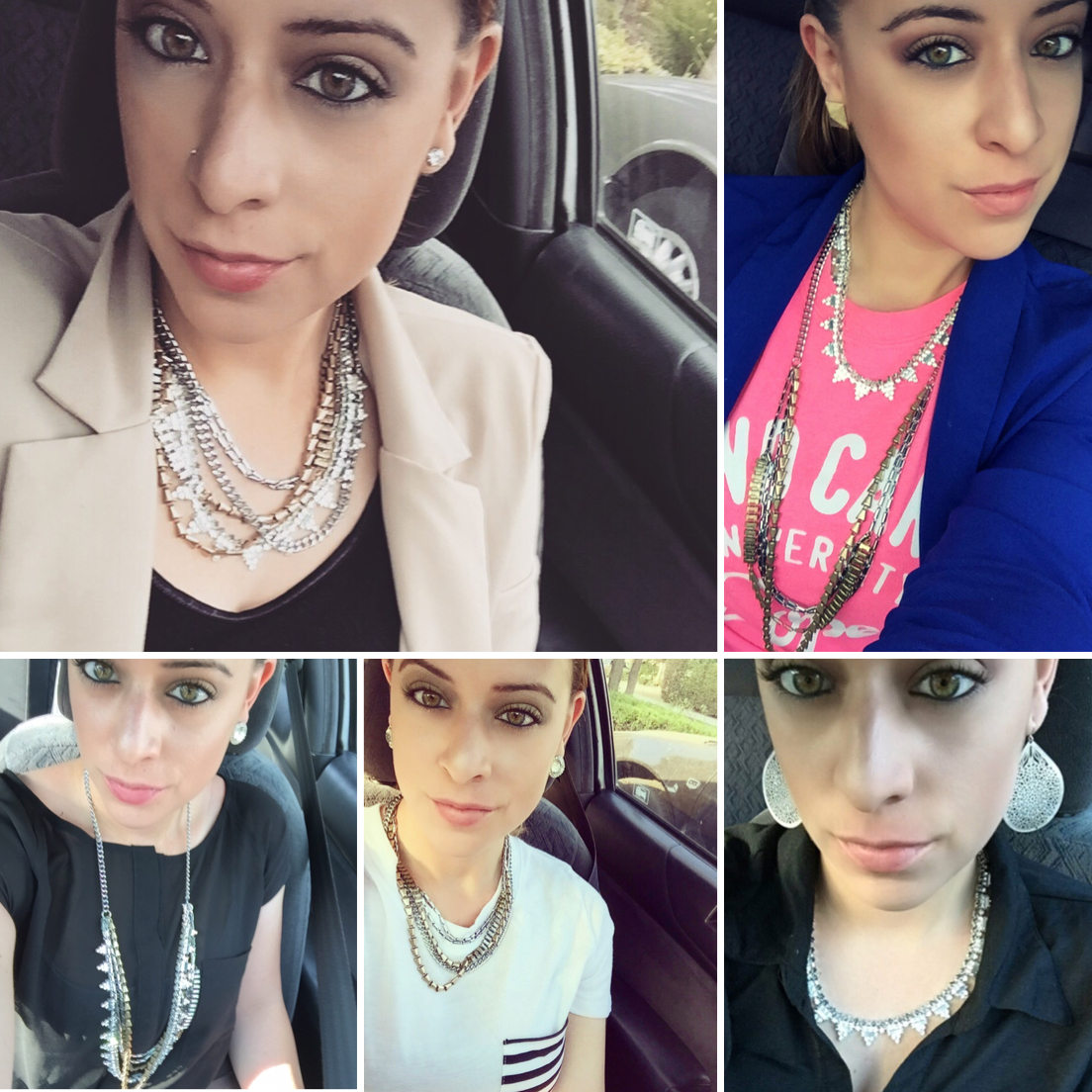| My Instagram image with 5 complete looks with 1 necklace. |