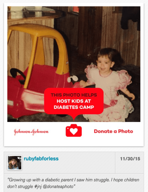 - Johnson & Johnson has curated a list of trusted causes, and for every photo you share through Donate a Photo, Johnson & Johnson gives $1 to the cause you want to help. That $1 does things like fix up a public park, get medicine for an infant, or help kids play sports safely. Each cause will receive a minimum donation and will appear in the app until its donation period ends or its goal is reached.