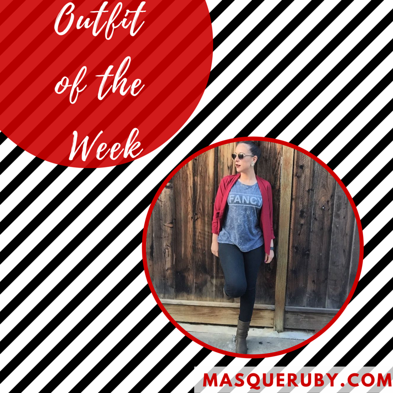For this week’s outfit of the week, I choose a business casual look with some boots and a comfy tee. I wore my Target “Fancy” shirt paired with some black jeans and a comfy maroon blazer. I felt real fancy with my hair bun and heart shaped earrings.